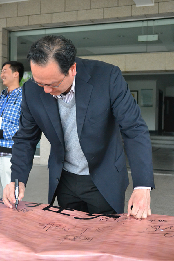 院党委委员、纪委书记夏开堂也来到祈福现场签名。他认为学生记者团举办这次活动是个很好的开端,学院接下来也将组织捐款、捐赠等系列活动,使师生们更加积极关注雅安灾区,奉献爱心。