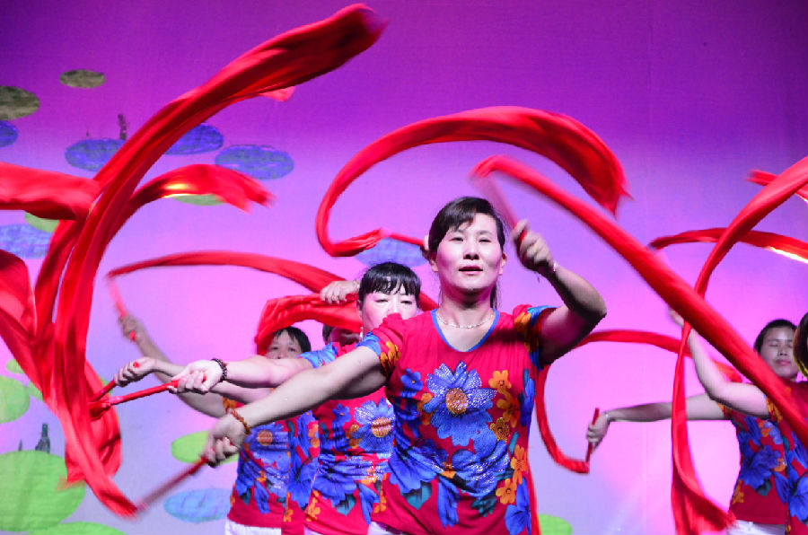 启动仪式后进行的首场演出,是浙艺院师生为村民们献上艺术大餐,赢得了众多好评。整台节目内容丰富,充分展现了浙艺院的艺术特色,演出现场气氛热烈,观众们真诚的掌声与师生们完美的表演构成了一道独特的风景。越剧表演《十八相送》梁山伯与祝英台的深厚情谊细腻传神、韵味深厚;男子群舞《草原汉子》铿锵有力的节奏,高空翻的技巧令观众们大开眼界;女声独唱《红旗颂》专业的民歌唱法,令现场观众叹为观止。同时,横街村文艺爱好者也表演了红绸舞《中国歌赞美》、排舞《爱我你就把我来追求》,乡村接地气的文化气息给我们眼前一亮的感觉,与专业表演擦出了不一样的火花。