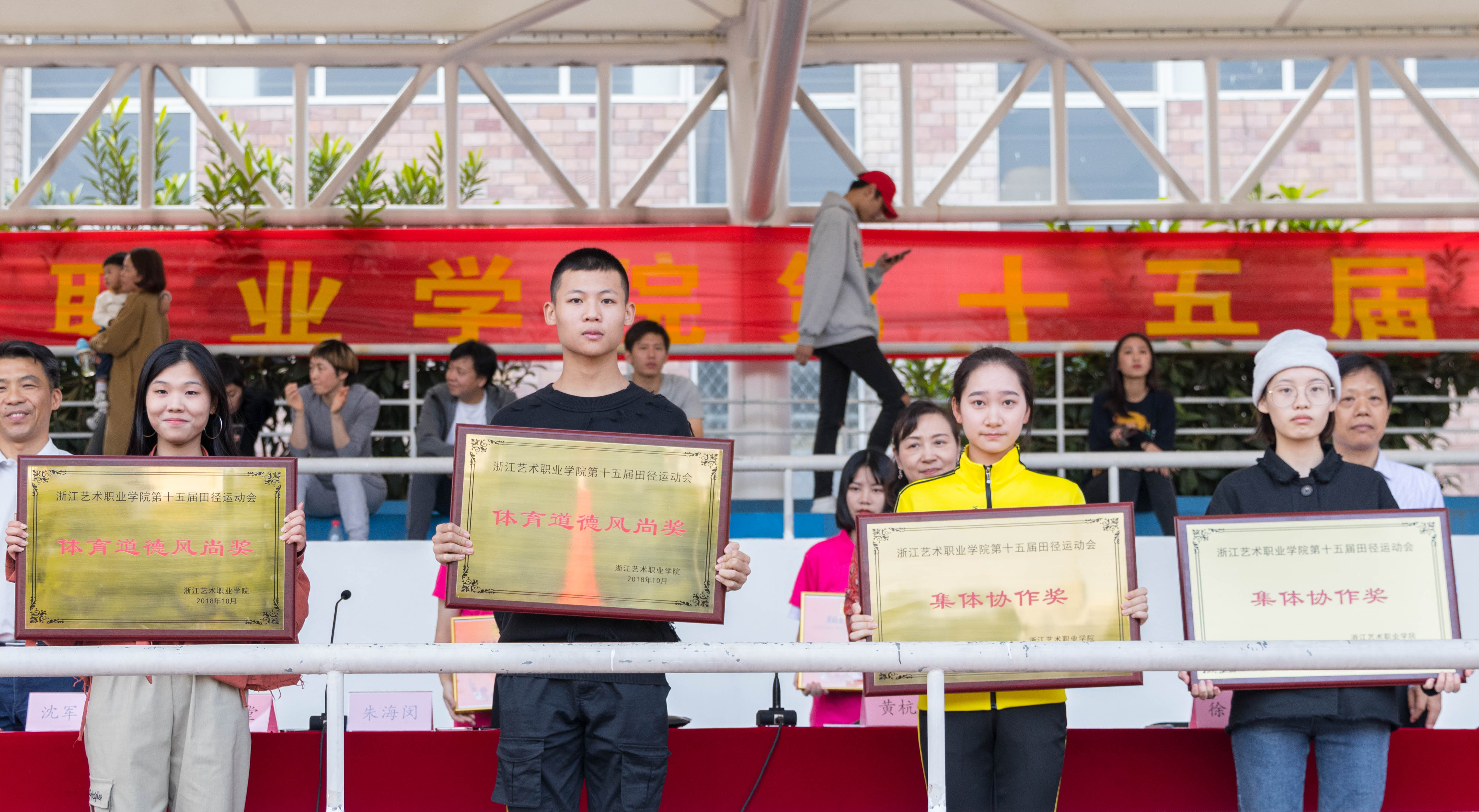 伴随着温暖的阳光,运动会胜利闭幕了。我们见证了运动员的拼搏努力,裁判们的严谨公正,志愿者的辛勤付出。我们被加油呐喊声所感染,被一幕幕同学们互相帮扶的情景所感动。这个秋天,这个下午,浙艺人在绿茵场上留下了属于他们的风采。