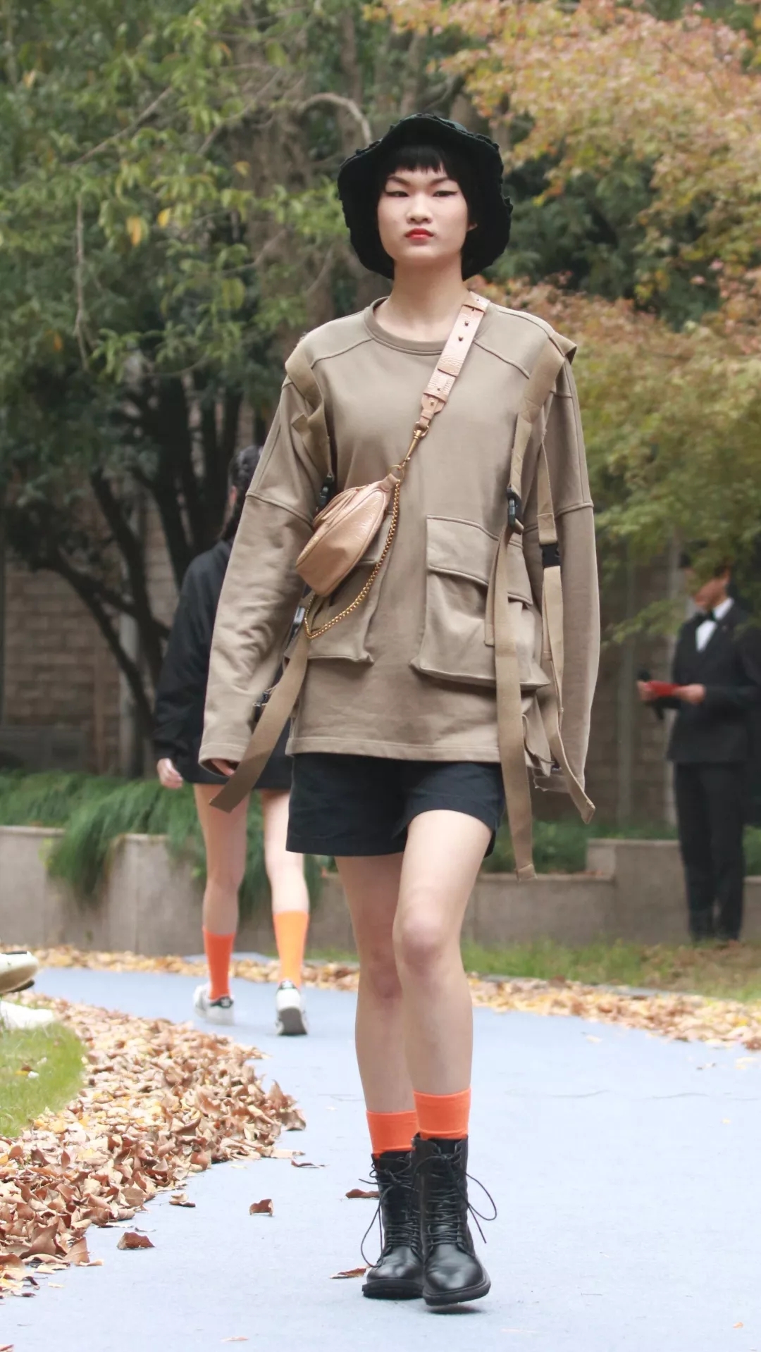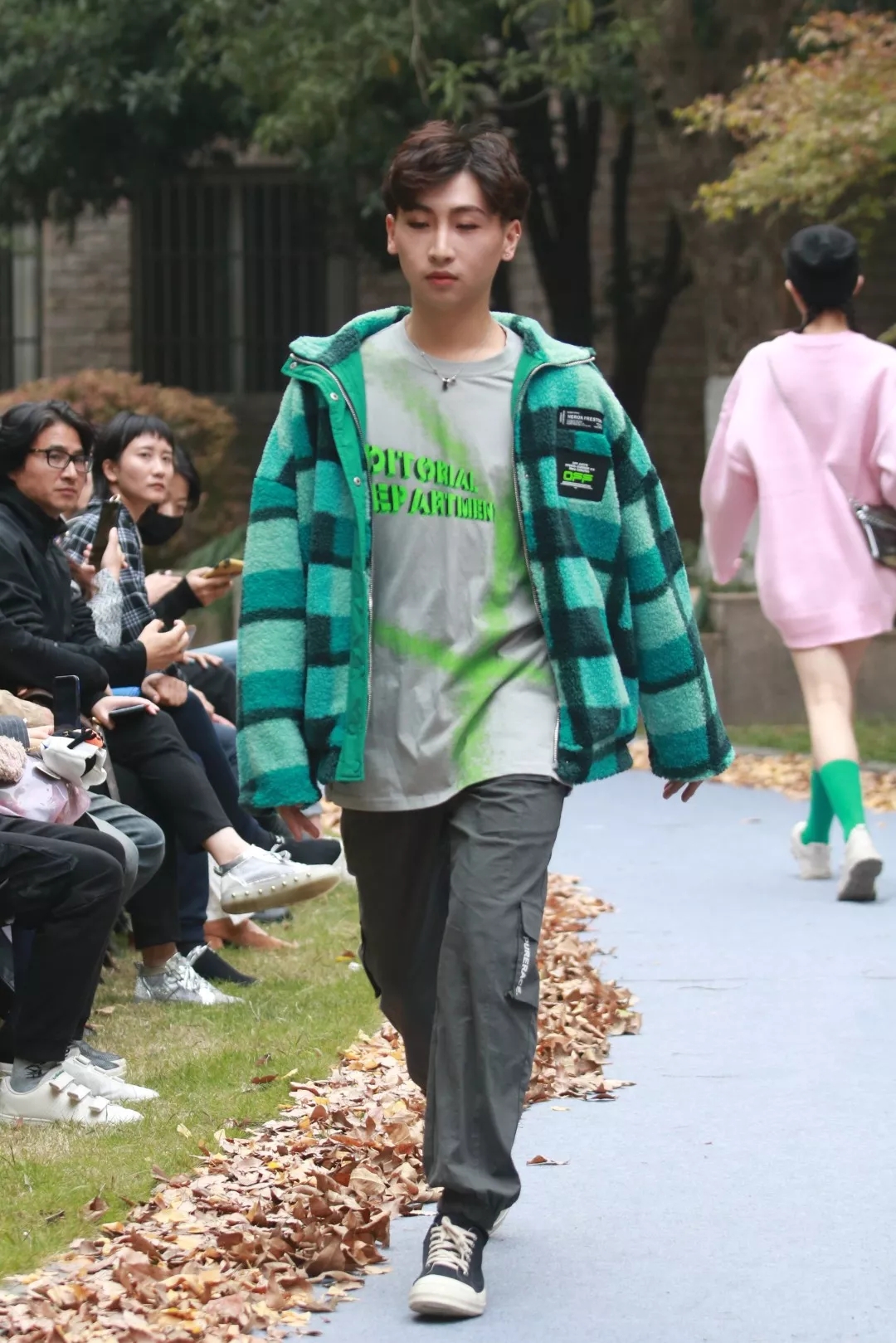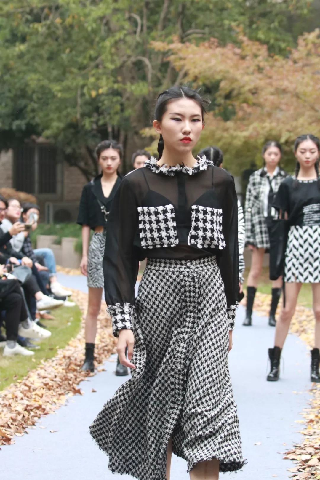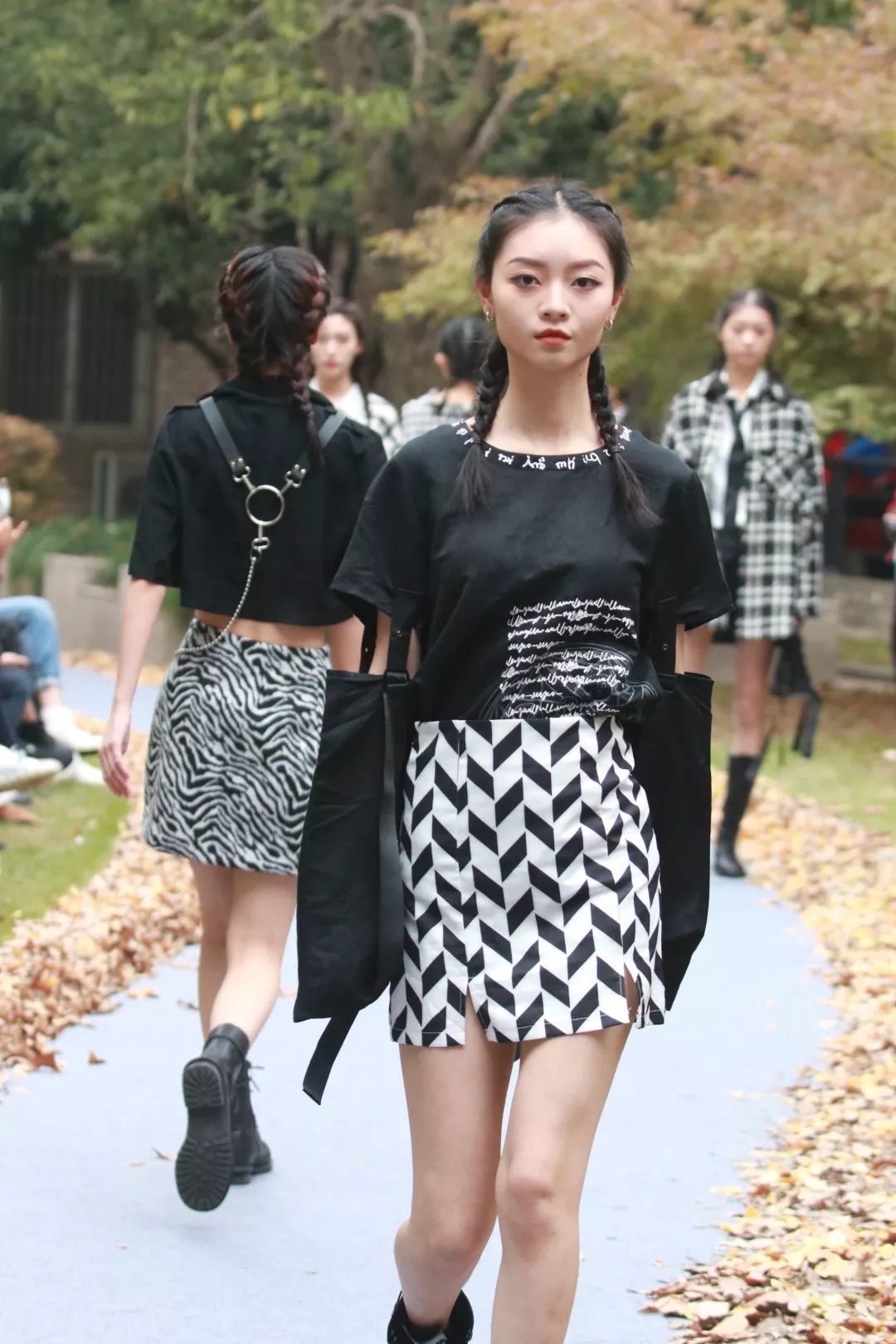 着音乐舞动,让观众在视听中感受青春的悸动与激情。缓缓走出的模特们身着亮丽服装,活力四射,个性张扬。这恰合青春的主旋律:绚烂多彩,活力四射,朝气蓬勃16模特与礼仪一贯班的照片点缀着花园,蜿蜒小径的两侧铺满了金色的银杏叶,这是一个与自然相融的舞台。