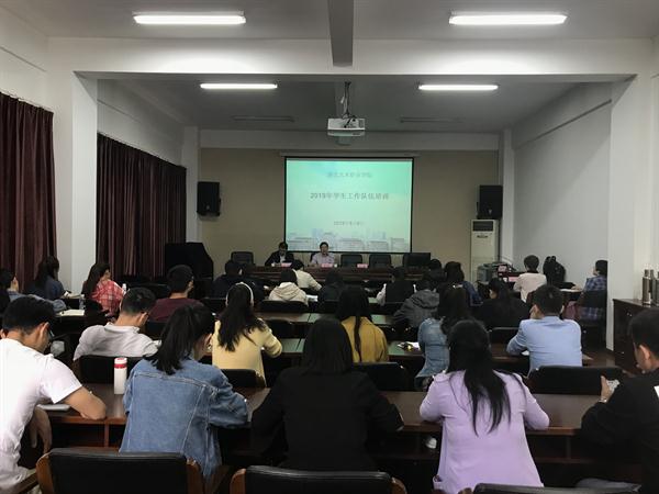 为贯彻落实习近平新时代中国特色社会主义思想和全省教育大会精神,进一步提升我院学生工作实效,56日,学工部组织开展了为期一天的2019年度学生工作队伍实操性培训,各教学系总支专职书记、辅导员、班主任代表共计60余人参加培训。培训活动由学工部副部长(主持工作)陈毅主持,院党委副书记夏开堂出席并作开训动员。