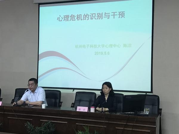 随后,浙江机电职业技术学院学工部部长张伟老师、杭州电子科技大学心理健康教育中心主任陈洁老师、浙江警察学院青年教师赵苡硕老师、校学工部副部长(主持工作)陈毅老师分别从学生思政工作实操、学生心理危机识别与干预、辅导员工作方法、学生班级管理这四大模块为本次培训授课。