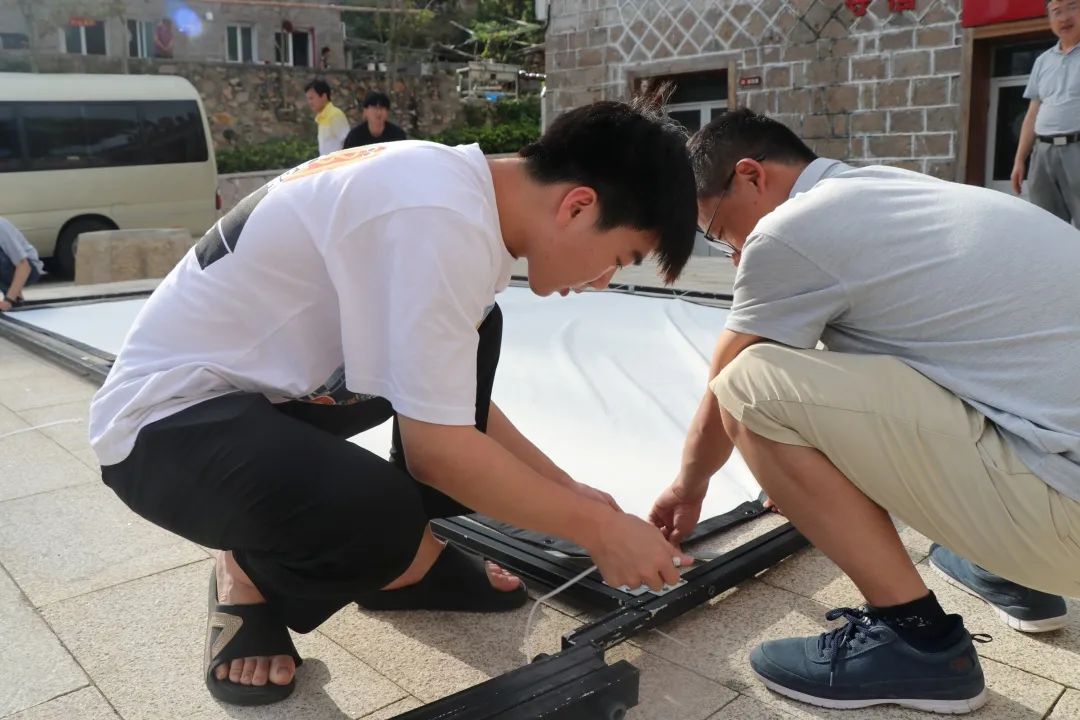 据悉,这已是影视技术系的师生们在“送电影下乡”的路上行走的第13个年头。此次在疫情防控常态化条件下,师生们自带观影凳子,对露天观影场地进行了间隔观影的场地布置,在电影院恢复开放的“行业春天”,为没有影院的半屏山渔民们送去了同样“有声有色”的文化生活。
