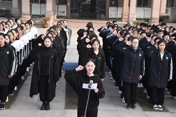 学生会主席黄霜霜带领戏曲学院全体学生进行国旗下宣誓,明史立志,以铮铮誓言致敬建党100周年。作为浙艺戏曲人,他们将练就过硬本领,砥砺从艺初心,为传承和弘扬中华优秀传统文化、建设社会主义现代化强国贡献自己的青春力量。在2019级小百花班全班同学带领下,戏曲学院师生同唱一首歌《没有共产党就没有新中国》。2019级小百花班陈子心和2017级越剧一贯班张宁说:“通过庄严的升旗仪式,我们深深意识到,作为未来祖国发展建设事业的接班人,我们要从当下、从自身做起,精艺修为,明德立志,以自身作为致敬建党百年。”