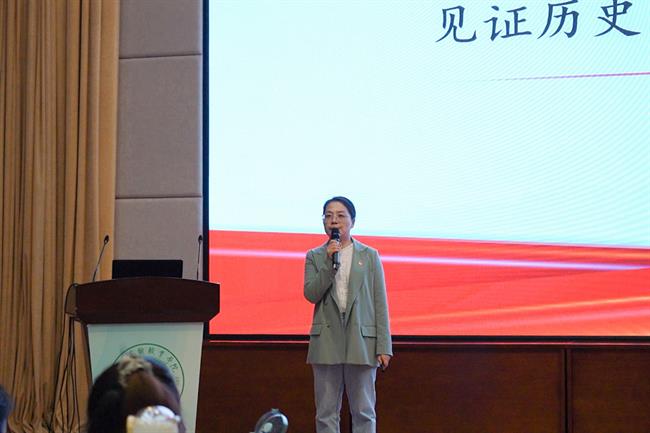 “习近平总书记在二十大报告中,27次提到奋斗,更强调了团结奋斗,可见,奋斗已成为习近平总书记讲话中的一个关键词,同时也成了中国人不变的信念。”基础教学部教师宣讲员魏晶晶以“十年伟大变革”为切入点,讲述了奋斗的中国和坚守信念努力奋斗的浙艺人,深情地表达了新时代新征程上的每一位中华儿女、每一位浙艺人都会因奋斗而更加幸福。