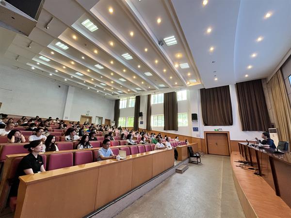 6月6日,2021年度浙江文化艺术发展基金资助项目大型原创音乐作品《共同富裕看浙江》活动讲座之《“词绘”——共同富裕看浙江》在校图信报告厅举行。本次讲座邀请诗词作者、编剧周国清担任主讲嘉宾。讲座由音乐学院副院长潘骅主持,音乐学院领导班子、全体教师、学生代表现场观摩聆听了讲座。