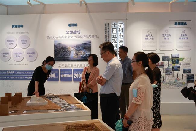 薛亮一行,会前来到大运河音乐公园,考察了大运河国家文化公园规划展示馆,详细了解大运河国家文化公园项目整体建设情况,随后赴杭钢旧址公园,考察大运河杭钢工业旧址综保项目,对校企双方共同探讨打造大运河国家文化公园高品质艺术活动充满信心。