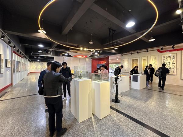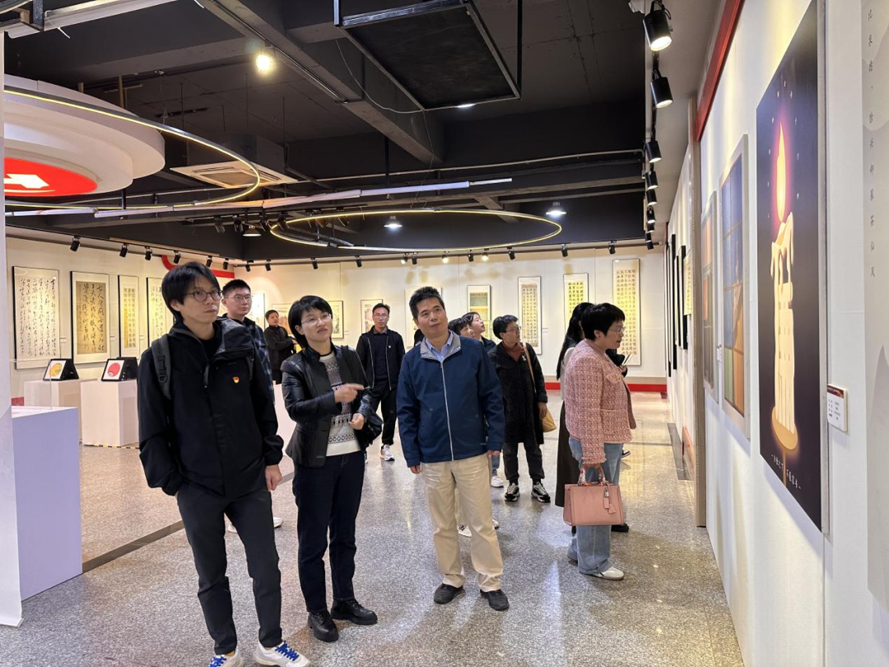 与会人员一同观看了学校和设计学院宣传片,并参观了学校“凝心聚力扬正气·勤廉干事树清风”廉洁文化艺术作品展。