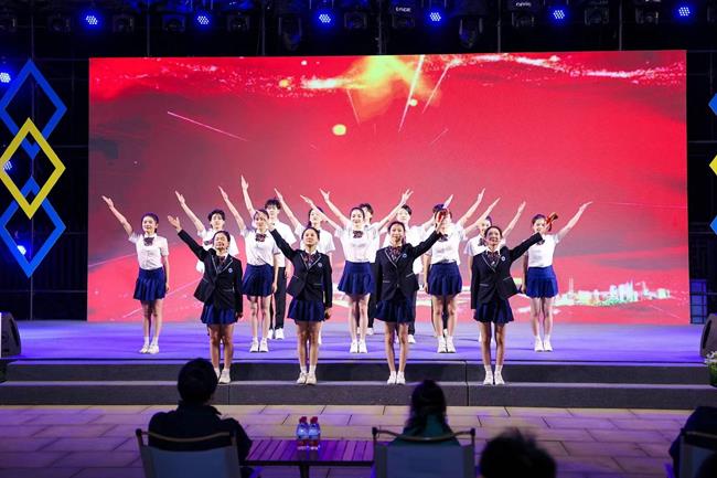 根据主办方主题要求,承担整场演出的演教学院表演艺术专业教学团队积极策划、组织、创排了这台“订单式”的演出节目,通过演出展现表演艺术专业学子“一专多能”的艺术才能。晚会在歌舞表演《龍》中拉开序幕,《龍》将舞蹈、声乐和鼓融为一体,旋律动感,配合默契、整齐划一。2019级表演艺术五年一贯班全体学生一开场就将全场气氛带入高潮。舞蹈、朗诵、歌曲次第登场,原创相声《智能时代》、原创小品《共同富裕山花村》、原创快板《共庆二十大 活力迎亚运》等原创作品让观众印象深刻,现场气氛热烈,掌声不断。