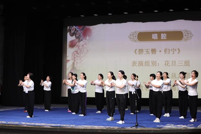 越剧、舞蹈、戏曲演奏三个汇报现场,学员们用认真、投入和饱含激情的表演汇报了培训成果,收获了阵阵掌声。本次培训,越剧班以唱腔运用、身段技巧、人物塑造为主要内容;戏曲演奏员班以代表性戏曲曲目为主要内容,强化主胡、鼓板的演奏技法;舞蹈班的核心课程是《基本功》《民间舞》,穿插《身韵》《流行舞》等内容。戏曲学院缪海洁老师是本次培训越剧班(花旦、小生)结业汇报演出的导演,她介绍,本次越剧班结业汇报是第一次采取集中在小剧场舞台分组汇报的形式,学员们都很激动和重视,有不少学员前一天晚上还在教室排练到很晚,为的是在舞台上更好地展示自己的参训成果。