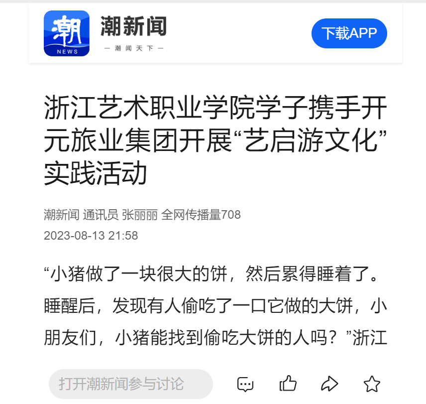 实践团成员姚静怡表示收获满满:“这次暑期实践活动让我逐步了解了社会,开阔了视野。我感受到文旅融合发展的必要性与紧迫性,更加意识到作为艺术类专业学生肩上承担的责任,对接下来的在校学习有了更明确的方向。”