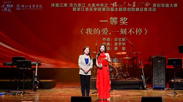 9月27日晚,在浙江省宣传部、省文联指导下,由浙江音乐学院主办的“绿水青山·美丽中国”原创歌曲大赛暨浙江音乐学院第四届主题原创歌曲征集活动颁奖晚会在浙江音乐学院大剧院举行。
