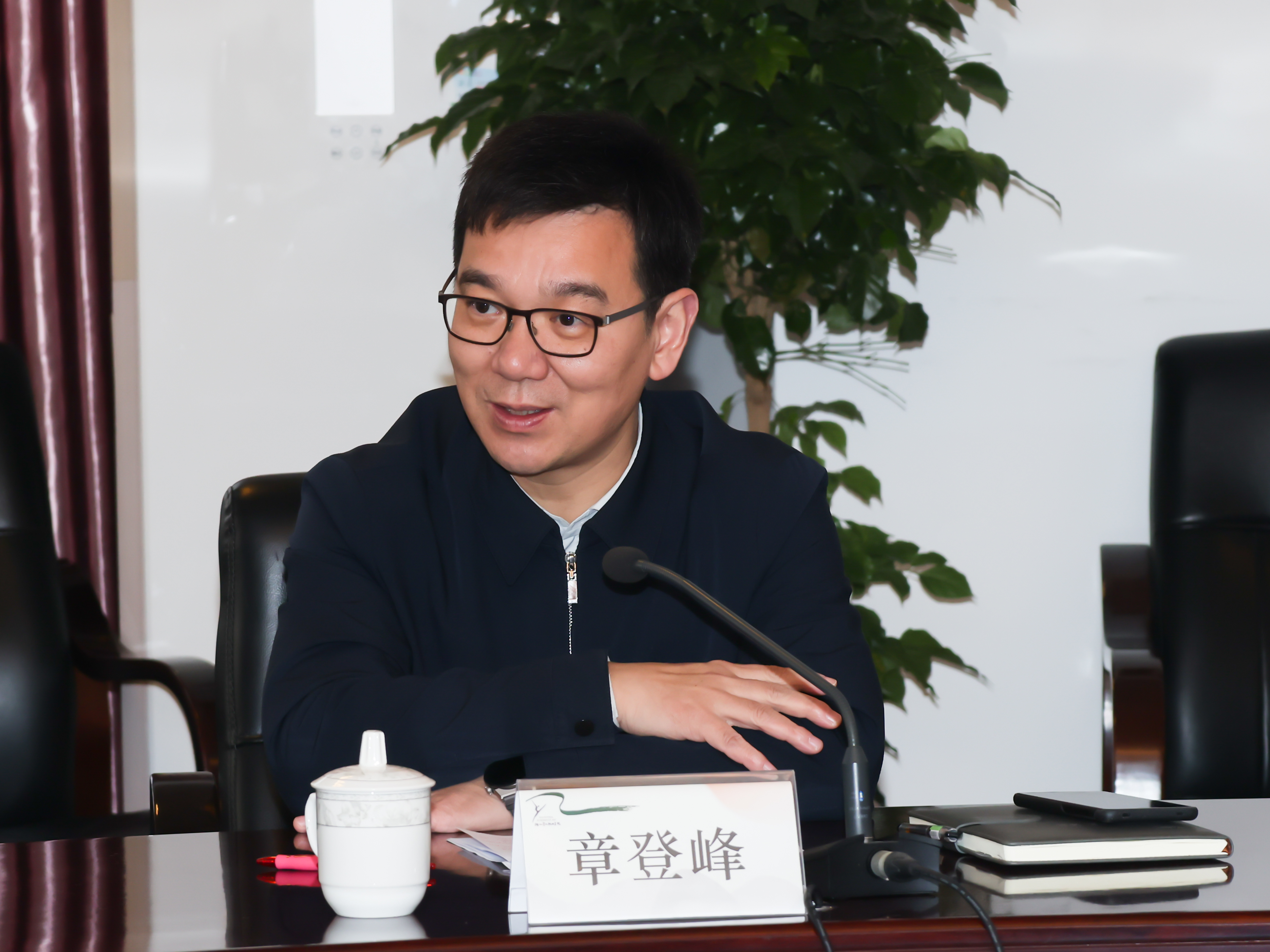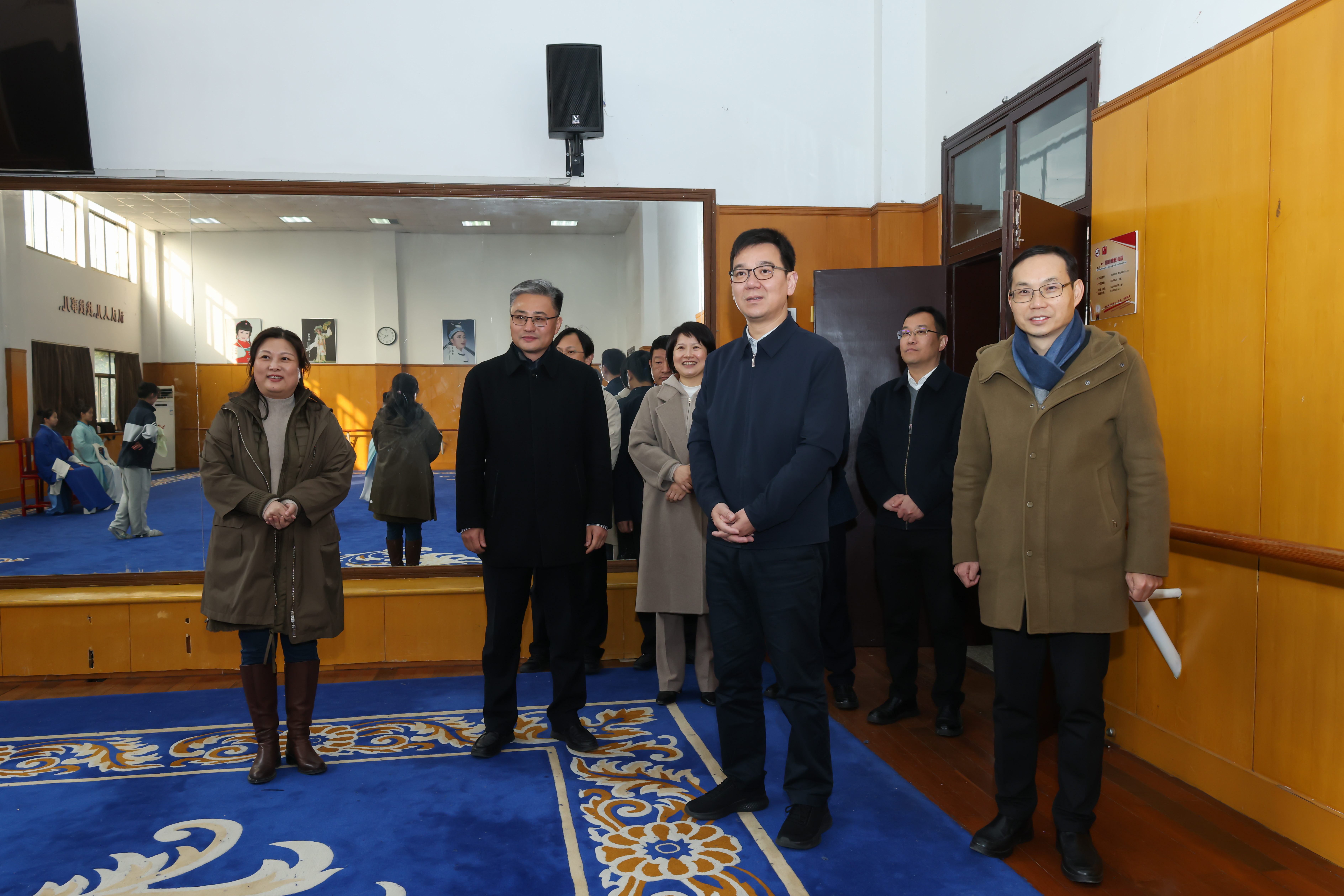 章登峰一行参观了戏曲学院、舞蹈学院、手工艺学院等教学实践场所,了解新教学综合楼建设进展,并与我校党委班子成员进行座谈交流。