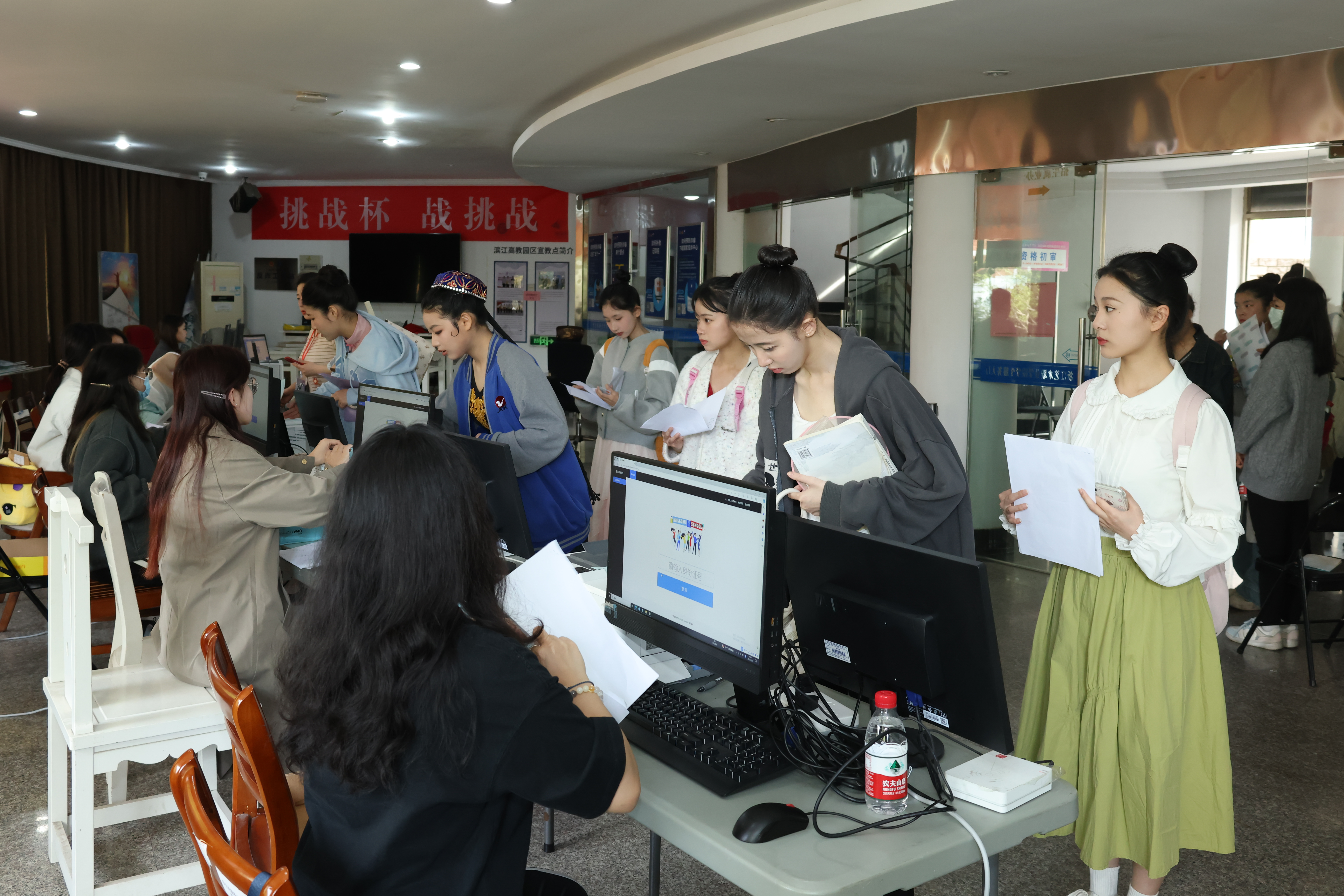 考生们在候考室认真准备