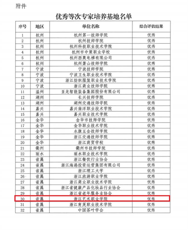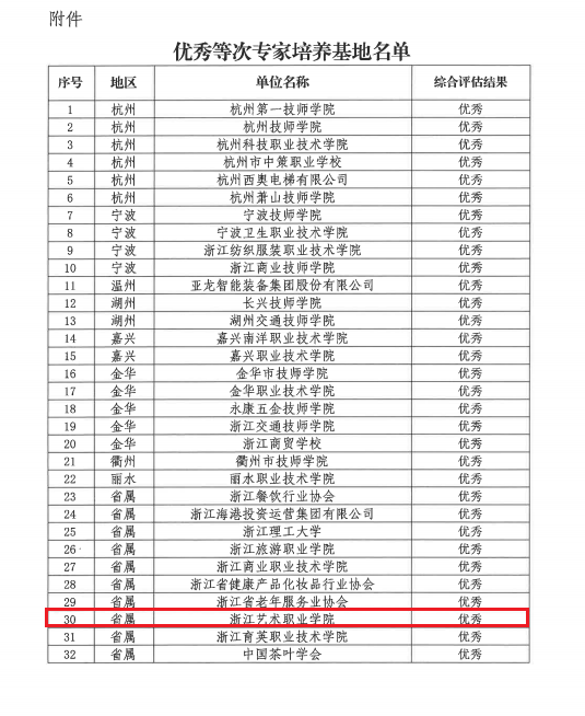 评选根据浙江省技能人才评价管理服务中心《关于开展全省技能人才评价专家培养基地试评估的通知》(浙技评函【2023】74号)要求,经省中心组织专家评审,最终评选出32家单位为浙江省优秀等次技能人才评价专家培养基地。