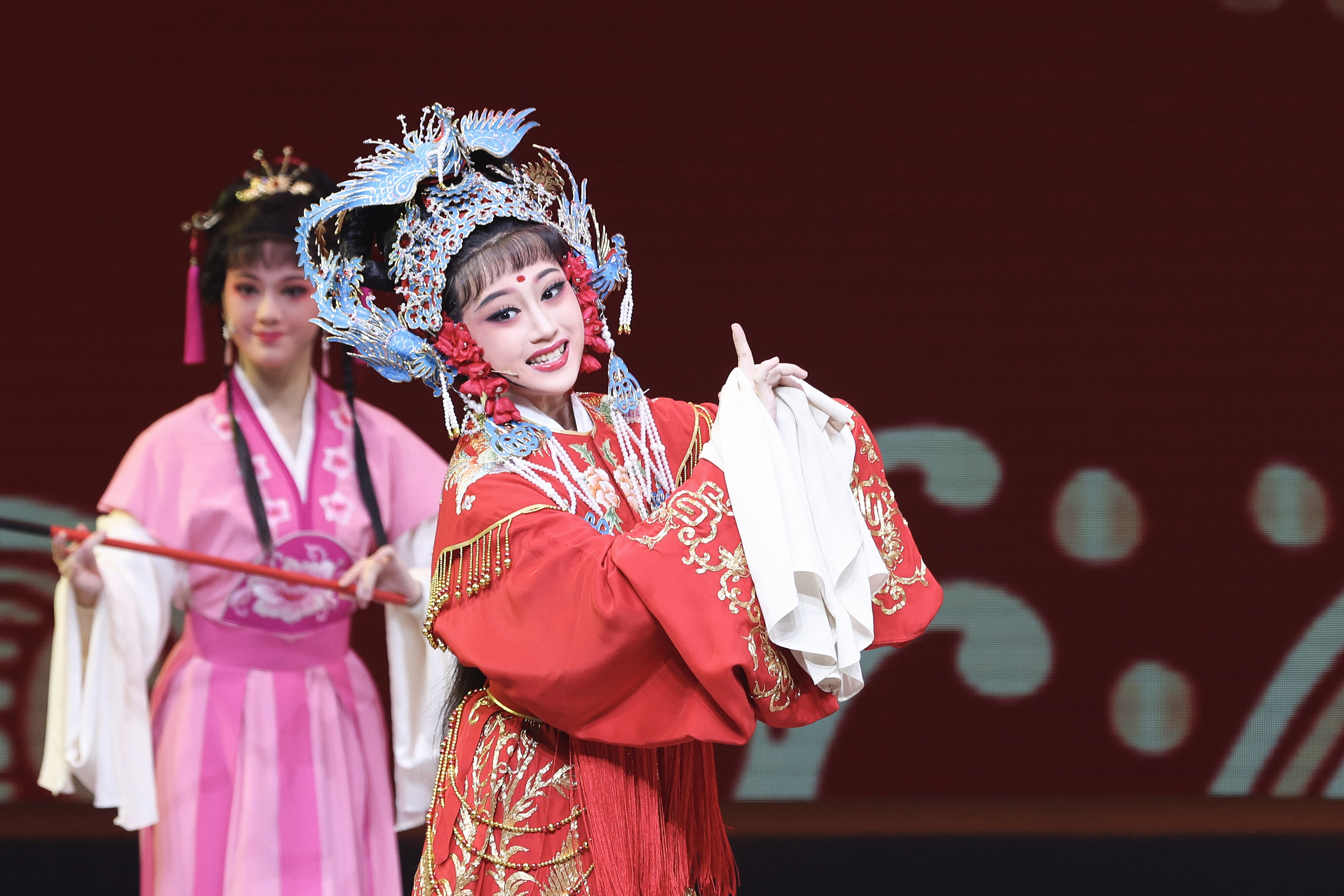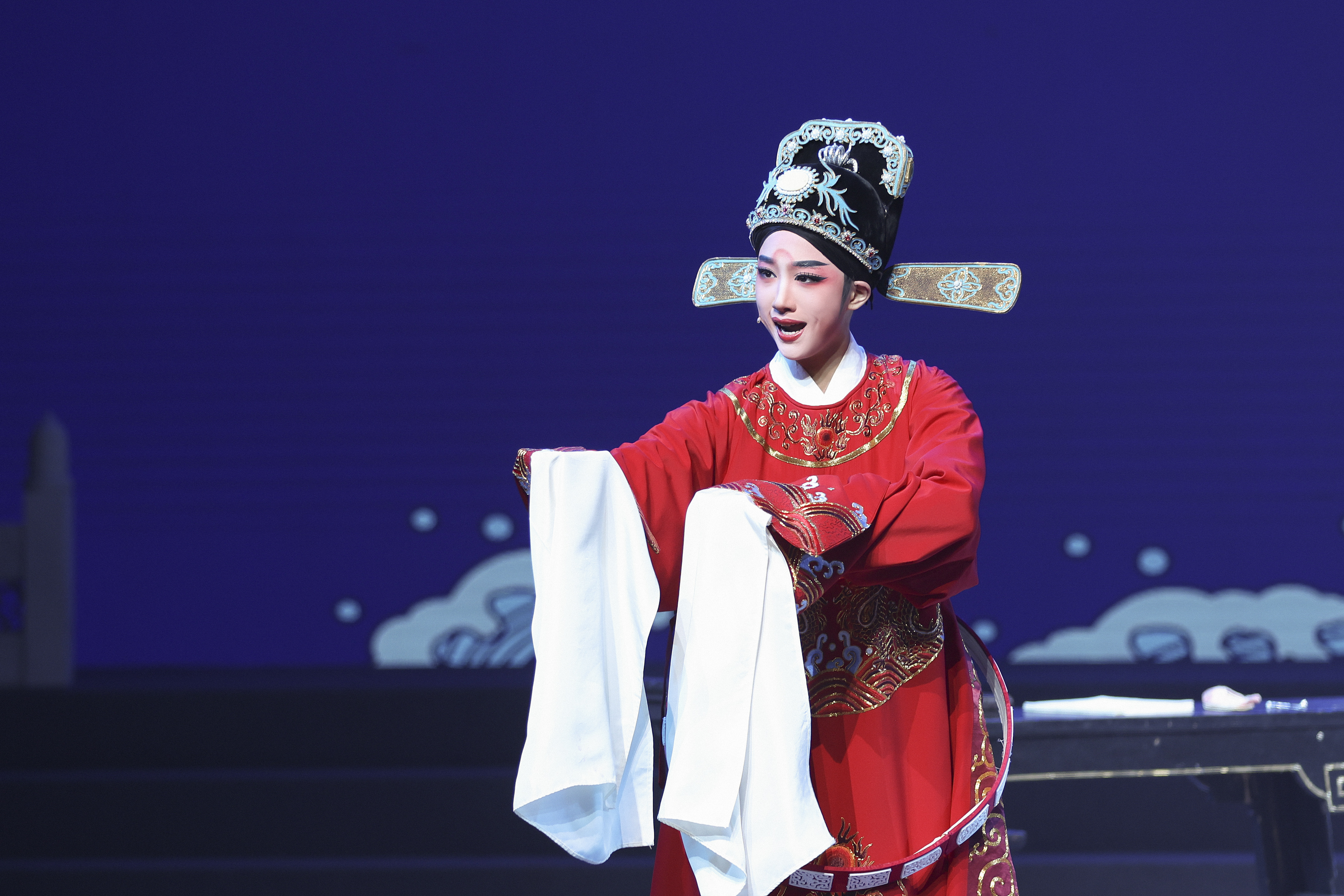 舞台上,一群平均年龄仅15岁的杭越订单班学员,以青春洋溢的姿态轮番登场,小生花旦,各展风华,台下观众的目光中满含期待与赞赏。这场汇报演出,不仅是她们历经高强度、高质量、高密度暑期集训的成果展示,更是对她们三年中专阶段学习成长的完美总结。学员们以细腻传神的演技、优美醇厚的唱腔和扎实的专业功底,在属于她们的舞台上,正式拉开了“与越同行”中高职一体化五年学习的新篇章。