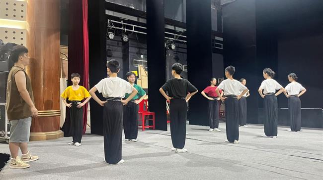 结业汇报演出以宁海平调吹打乐《十番锣鼓》开场,奏响“平调新韵”。培训班学员们的《金莲斩蛟》《吕布与貂蝉·小宴》《徐策跑城》《珍珠塔·跌雪》《阴阳河·挑水》《赵奢收赋》六个平调剧目轮番上演,扣人心弦。宁海平调订单班的全体传承人以暑期集训成果曲牌联唱《雏燕试啼》传递平调艺术薪火相传梨园新声,为一个月的培训画上圆满句号。